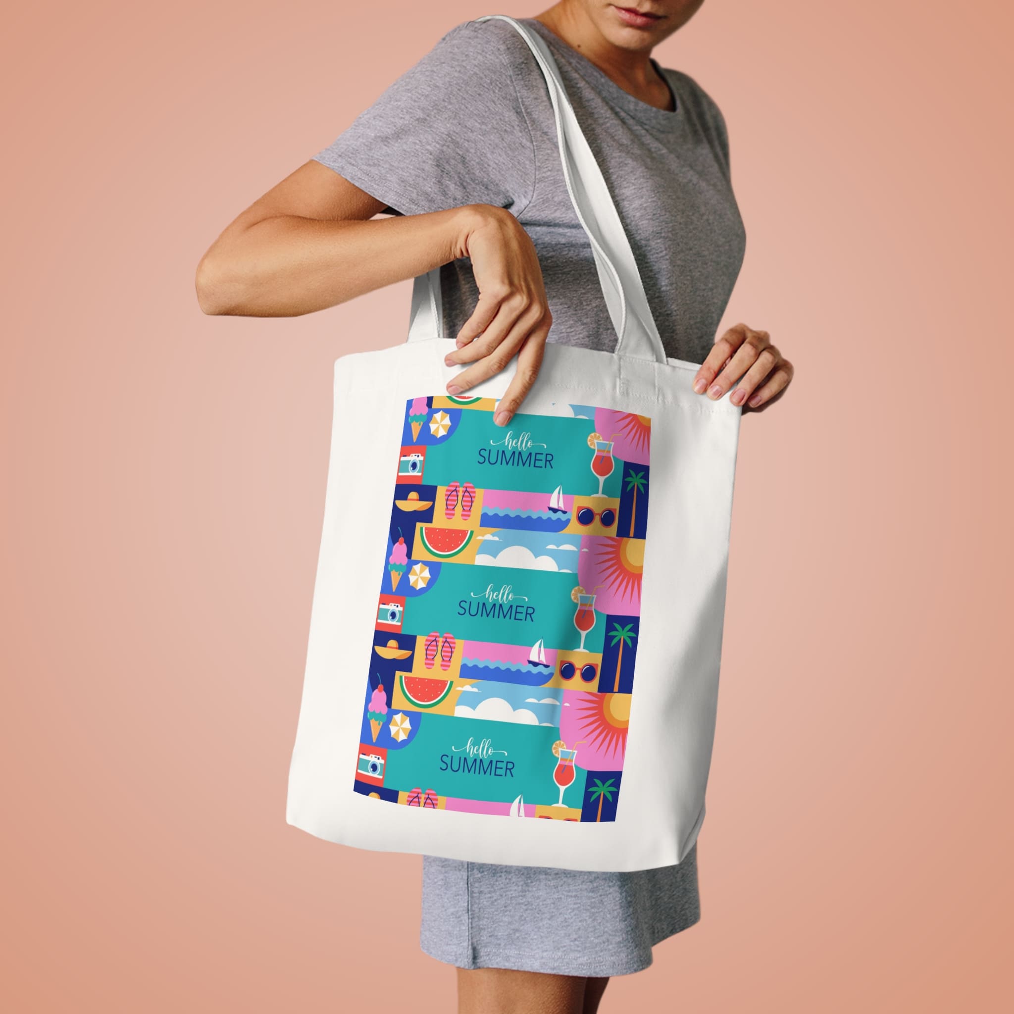 Carry your essentials in effortless style with this art-inspired canvas tote bag — the Hello Summer Colorful Beach Tote Bag from NessBoutiqueArt. Made from premium cotton canvas, it combines strength, comfort, and everyday versatility.